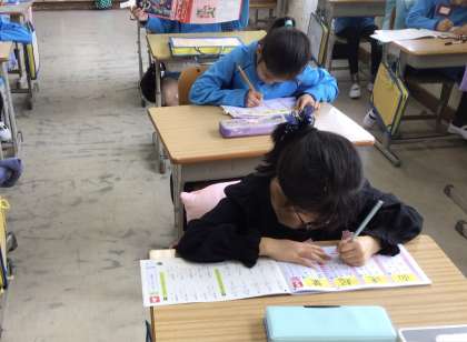 今日は、漢字ドリルを使って新出漢字の練習をしました。