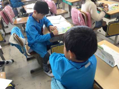 今日は、九九の表を使って隣の友達と数当てゲームを行いました。