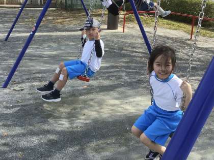 天気がよかったので、運動場で過ごしました。ブランコに乗ったり、ドッジボールをしたりしました。