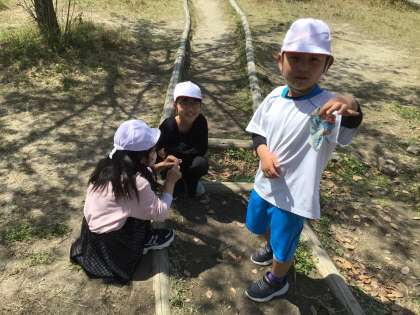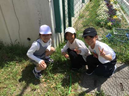 運動場で見ることのできる植物や虫を観察しました。たんぽぽやアゲハチョウ、アリなどを観察することができました。