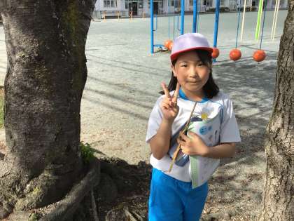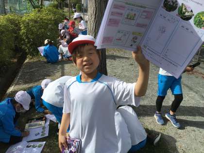 1組の授業です。運動場にある花の観察をしました。観察した後に、観察カードを作りました。