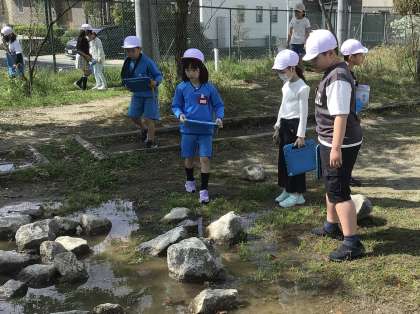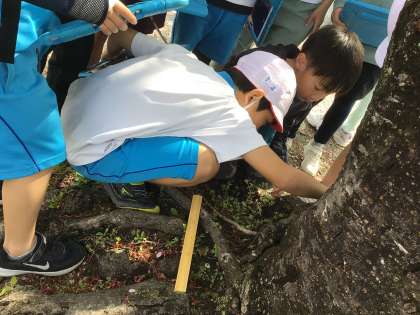 3組の授業です。運動場にいる虫の観察をしました。