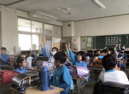 「今日のかがやきさん」で、たくさんの手があがっています。クラスの友達のよいところを見つけることができて素敵ですね。