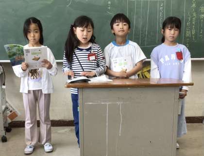 すいせんのラッパの音読発表会です。班ごとに発表しました。大きな声ではっきりと発音して読むことができました。今回は、3つの班が発表しました。素敵な発表会となりました。