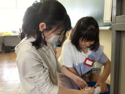 6年生と一緒に丁寧に掃除をしています。隅々まで綺麗にしていて素敵な姿です。