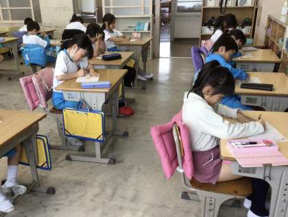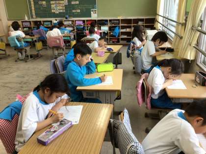 2回目の新出漢字のテストを行いました。早く終わった子は、静かに読書をしています。