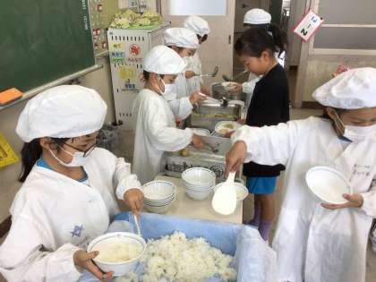 今日は、帰りの会の後に給食の時間がありました。給食当番の頑張りで配膳時間が短くなり、食べる時間が長くなっています。