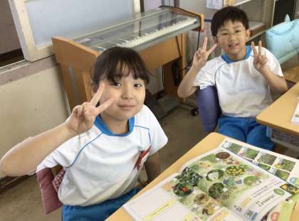4組の様子です。虫メガネを使って運動場にいる生き物の観察をしました。その後、教室に戻りノートにまとめをしました。