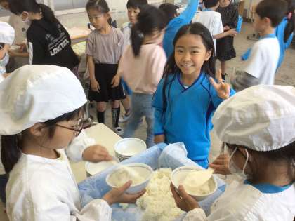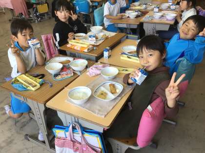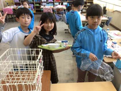 今日の様子です。給食の準備も早くできるようになりました。