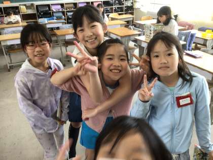 教室で友だちと楽しく過ごしています。