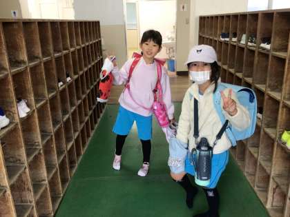 友だちと仲良く元気に登校しています。