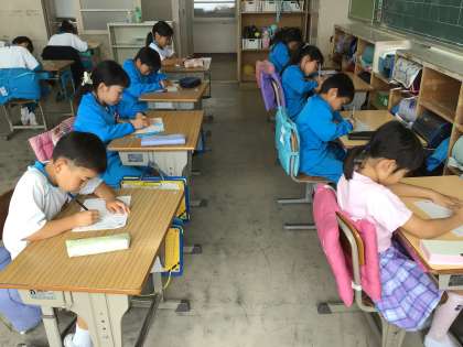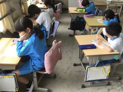 今日は、新出漢字テストを行いました。テストの後は、ことばのきまりを使って国語辞典の調べ方の練習問題も行いました。