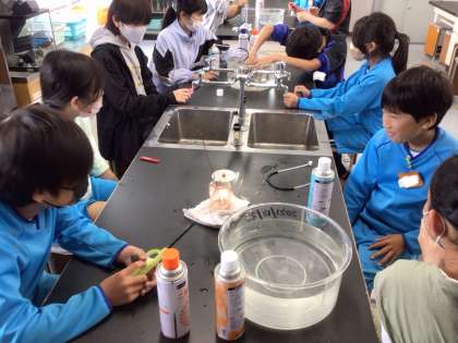 酸素、窒素、二酸化炭素。 色んな気体で炎がどうなるか実験中です。