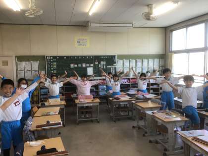 にこにこ交流に向けて、3年生の紹介動画を撮るための、練習しました。「はずかしい」と言いながらも、とっても楽しそうでした。明日が本番です。