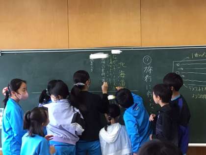 話し合いの授業が始まりました。 テーマは、旅行に行くなら北海道か沖縄か!?
