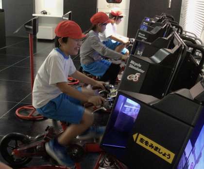 シュミレーターで自転車に乗る練習をしました。その後、自転車の乗り方をみんなで振り返りました。