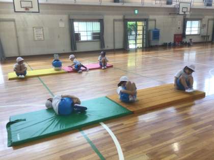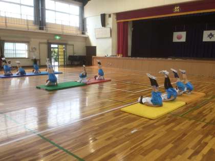 「マット運動」の学習です。今年始めてのマット運動だったので、昨年度まで学習した技を、振り返ってみました。
