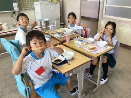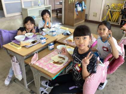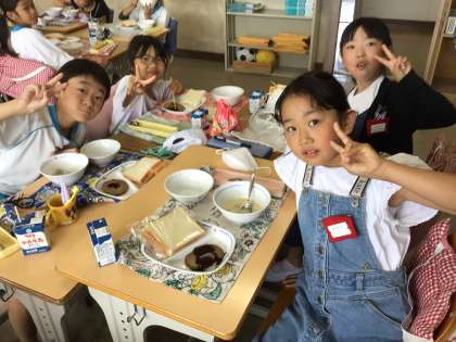 この日のメニューは、スライスパンにハンバーグを挟んで食べました。豆がたっぷり入ったまめまめまめのスープもたくさんいただきました。アーモンドサラダも残さず食べました。