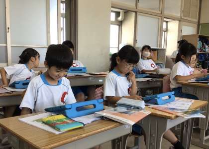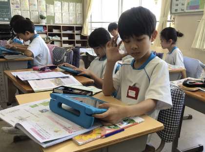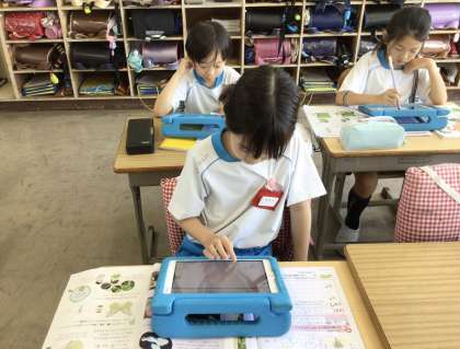 3組の授業です。前の授業で撮影した虫の写真を発表ノートにして提出しました。発表ノートを見ながら虫の体のつくりを調べました。