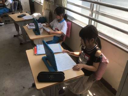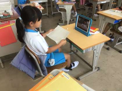 「わたし」の説明文を作ろう、の学習です。何度も内容を書き直し、文章を完成させました。動画で撮影中です。