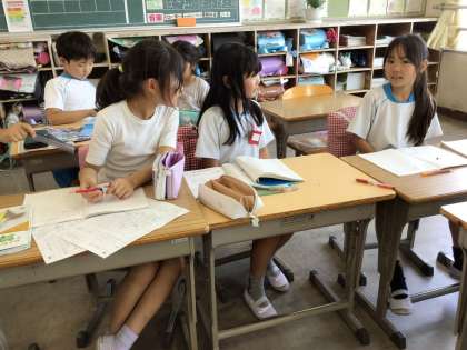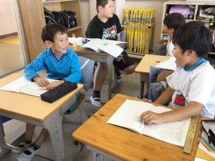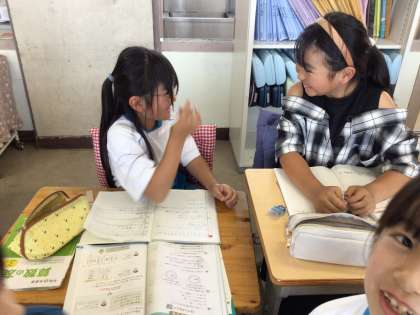 隣の友達と話し合いをして考えを深めていました。どの子も積極的に発言して理解していました。