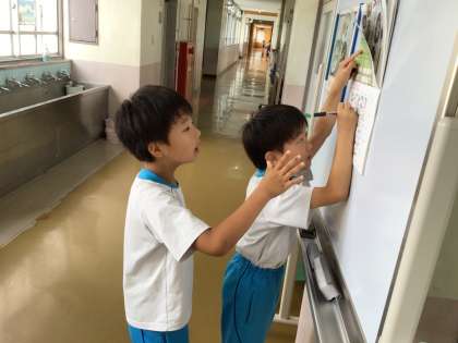 今朝も、朝の準備が終わった後に廊下の掃除をしてくれている2年生がいました。カレンダーにメモを書いている子もいます。元気に過ごしています。