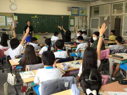 硬筆で「枕草子」の冒頭の視写をおこないました。どの子も真剣な表情です。活動後のふりかえりでは、多くの子ができたことや気づいたことについて発言しました。