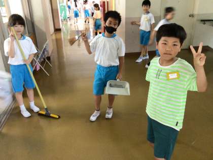 廊下の掃除をしている2年生が増えました。さすが、素敵な2年生ですね。笑顔も素敵です。
