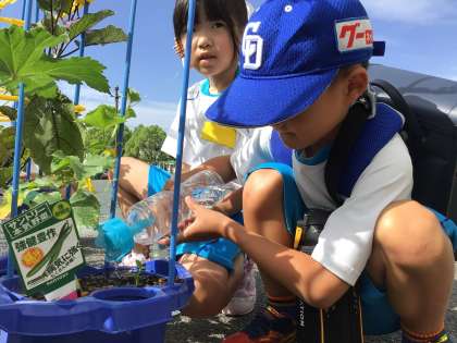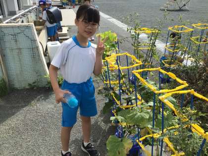 天気もよくたくさんの水をあげていました。毎日の世話のおかげで、キュウリ、ナス、トマトなど大きな実が実っているものもあります。