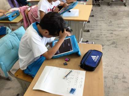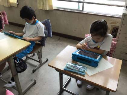 今日は、耳の不自由な人が使っている道具、機械について学習用タブレットを使って調べました。調べたことをプリントにまとめました。