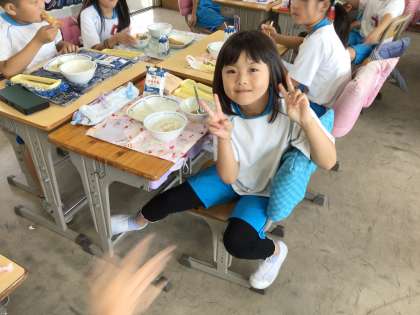 3組の様子です。みんなよく噛んで食べています。