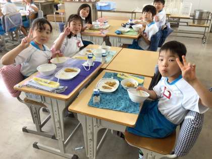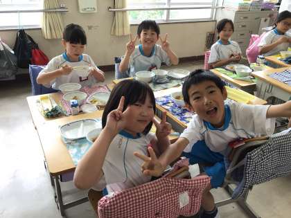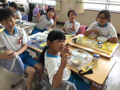 4組の様子です。笑顔で食べています。