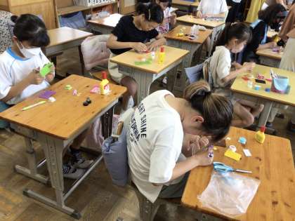 6月24日(月)のクラブでは、ペットボトルキャップにフェルトを貼ってマグネットを作りました。元の材料は同じでも、アイデア次第で個性豊かな作品たちが生まれました。「こんなのできた!」「かわいい〜」「家の冷蔵庫に貼る!」などと、嬉しそうに話す姿がたくさん見られました。