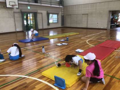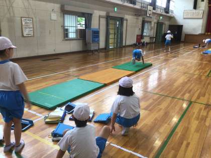 連続技の練習をしながら、友だちにアドバイスをもらっています。