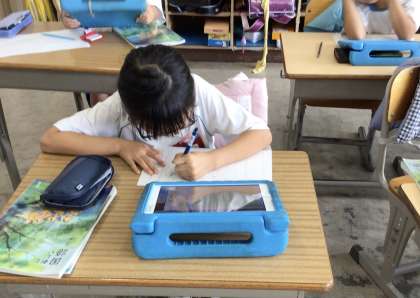 「心が動いたことを詩で表そう」です。完成した詩を発表ノートに書いて提出した後に、友だちの詩を読んだ感想を書きました。