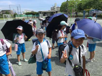 天気のよかった日の様子です。笑顔で帰りの準備をしています。