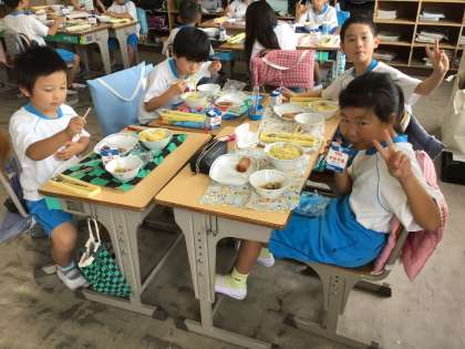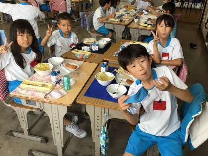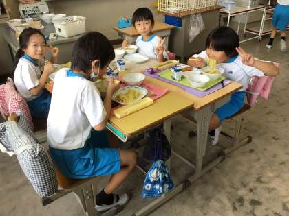 この日のメニューは、中華めん、ナムル、春巻き、とんこつラーメン、牛乳でした。