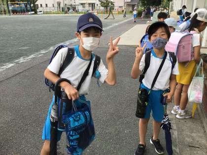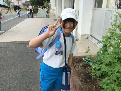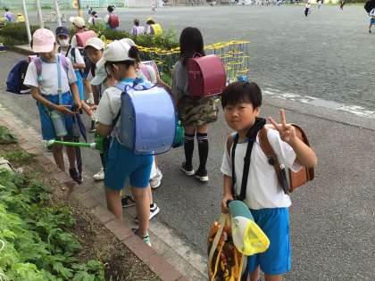 毎日、明るくツルレイシに水やりをしている4年生です。