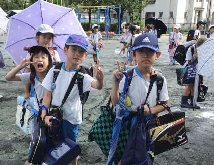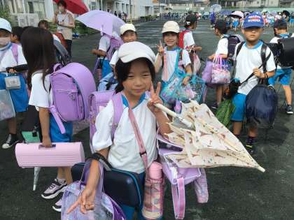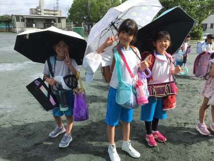 日差しが強くなり日傘を使う3年生も増えてきました。