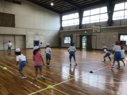 クラスレクレーションで、ドッジボールをしています。夏休み前に、みんなで楽しく過ごしています。