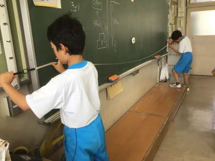 「長さ」の学習です。巻き尺や、長いものさしを使って測定です。