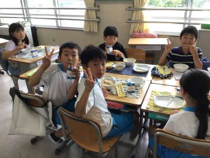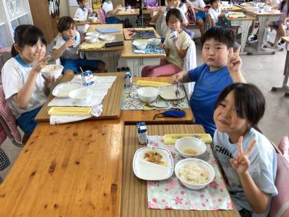 1組の様子です。笑顔で食べています。