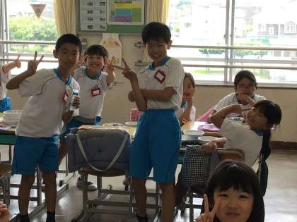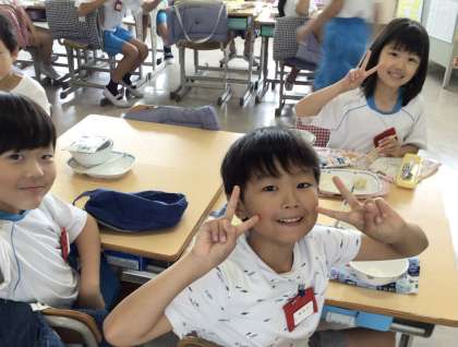 4組の様子です。笑顔で食べています。