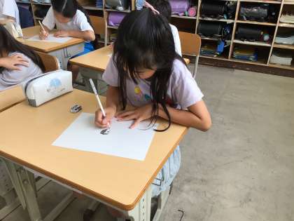 4組の授業です。えんぴつで人物画を作成していました。よく観察をして細部まで丁寧にかきました。