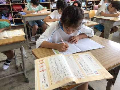 硬筆の練習をしました。教科書を見ながらノートに手紙の書き方を静かに集中して丁寧に書いていました。