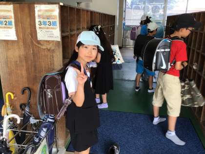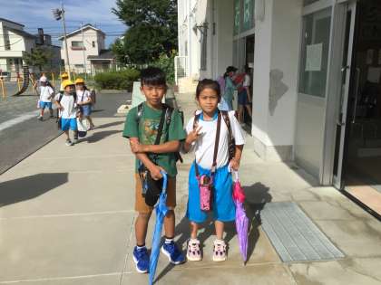 仲良く登校しています。
