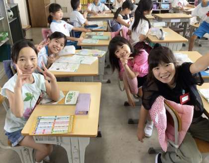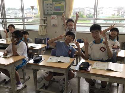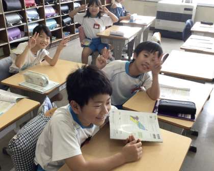授業の準備中の様子です。笑顔で教室で過ごしています。