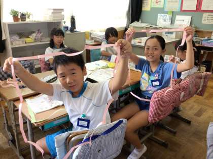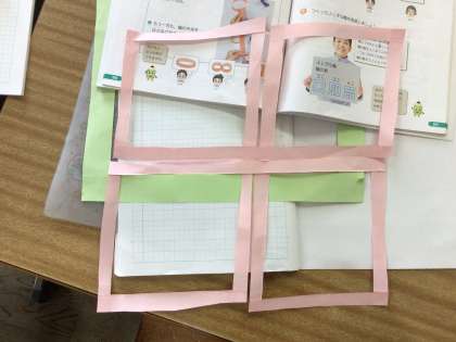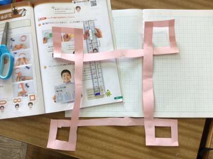 違う輪から違う四角形作りにもトライしました。輪のつなぎ方により、様々な種類ができました。