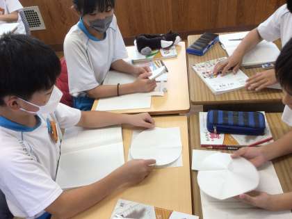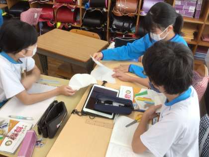 円の面積は大体どれくらいか、正方形を使って調べています。