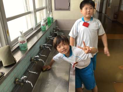 トイレ、手洗い場、昇降口の様子です。毎日、静かに掃除しています。